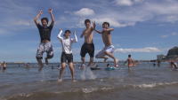 午後から海に入りました。暑さの中ではやはり海が呼んでいます~~足を付けるだけでもホッとしました。熱海の海も綺麗になり大きな魚も見えるそうです。