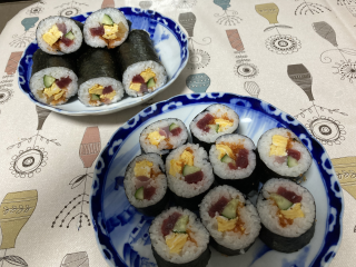 我が家の節分は太巻きを5合分作る。毎年多すぎる~残ってしまう・・・・と言いながらも同じことを繰り返して孫に笑われています。今年は本マグロ・数の子入りの大好きな海鮮巻です。孫が小さい頃は一緒に豆撒きをした主人ですが今年はやりません。仕方がないので私が玄関に小さな声で豆をまきました。