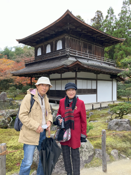 迄時間があるので予定外の銀閣寺に連れて行ってくれました。天候はこの時だけ小雨が降っただけで済みました。