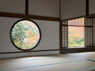 源光庵は「悟りの窓」「迷いの窓」から見える紅葉が有名です。窓から見える紅葉はまだまだ綺麗でした