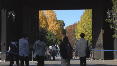 乾門から見える銀杏並木がまるで絵画のような風景でした。
