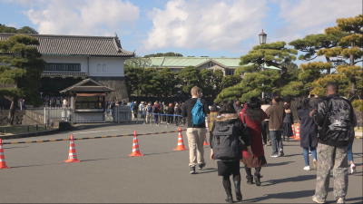 坂下門から入ります。荷物の検査やペットボトルを持参の方はその場で一口飲みます。