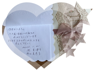 お肉が写真には入っていませんがその他ウーロン茶と杏仁が出ました。友人からお祝いのメッセージと祝い金も頂戴しました。素晴らしい仲間に恵まれてここまで来られました。