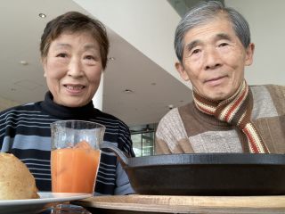 2026・1・20(火) フロリコ食堂は月一回食事をしています。広々とした空間が何とも言えないご馳走です。お値段はリーズナブル。ニンジンジュースがまた格別なお味です。私の誕生日を主人に祝って貰いました。