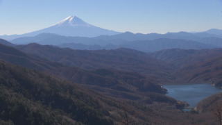 | 念願かない見えた富士山と上日川ダム | 雪をかぶった南アルプス |