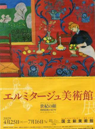1764年にエカテリーナ2世が美術品を買い取ったのが、エルミタージュ・コレクションのはじまりです。[2]エルミタージュ美術館の起源はエカテリーナ2世が1775年に建てた自身専用の美術品展示室であり、一般に公開はされていなかったが、1863年に初代館長となったゲデオーノフによって市民も観覧が可能となりました 今回の展覧会は1章・・16世紀ルネサンス:人間の世紀から 5章・・20世紀迄の作品が展示され人気を集めています。 5章の赤の部屋(赤のハーモニー) は最初は青のハーモニーとして描かれ一夜にして赤に看板を変えた珍しい例です。元の青は今でも縁に残っています。色彩豊かでエルミタージュ美術館の花。≪アンリ・マティス≫ |