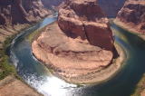 | 2日目(6月14日)ラスベガス〜ベイジ バスで5時間コロラド高原の中にあるアンテロープキャニオンに向かう。 砂埃の中を車は走る・・・・・ふと空も見上げると澄んだ紺碧の空がそこにはある。今まで見たことのない空の色が・・・・・ レイク・パウエルへ流れ込む支流のひとつが刻んだ小さな渓谷は極端なまでの幅の狭さと幻想的な造形には息を呑まずにいられない。まるで水流の渦がそのまま岸壁に刻まれているような不思議な形は, 砂丘が固まりできた砂岩が鉄砲水で浸食されたもので,スロット・キャニオンとも呼ばれています。 場所はベイジの東側、ナバホ族居留地内にあります。 ホースシューベンド ダムの下流にありコロラド川が馬蹄形の急カーブを描く場所です。 灼熱の太陽の下, ひたすら砂漠道を歩きます。高さ300mから眺めるコロラド川は圧巻です。 此処は柵もなく風が強いので寝そべり撮影します。覗き見るのも怖いくらい〜〜 アメリカらしい自己責任の場所なのです。 |