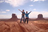 | 3日目(6月15日)ベイジ〜モニュメントバレー〜グランドキャニオン アメリカの原風景ともいわれるモニュメントバレーはユタ州とアリゾナ州の州境にある。此処もナバホ族居留地内です。エル・キャピタンとフクロウ岩の間の通は幌馬車に乗っているような錯覚に陥る風景です。「フォレスト・ガンプ」ここで撮影しました。 砂埃とでこぼこ道で撮影しているカメラが心配〜〜1時間30分の観光はあっという間に終わる。 グランドキャニオン 再び来られました。グランドキャニオン国立公園サウスリムの東端にあるデザートビュー・エンゼルポイントからの眺めです。コロラド川が大きくカーブする角にあるため見晴らしは抜群。展望台に建つウォッチタワーは先住民の遺跡からデザインを写したもの。塔は鉄筋とグランドキャニオンの岩石で出来ており中には先住民の壁画が描かれている |