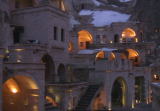 洞窟ホテル(アナトリアン・ハウジズ)着は7時を過ぎていました。部屋が全部違う為、添乗員の計らいで部屋の鍵を選びます。くじ運が強いと言うSさんに頼まれ鍵を選びます。・・・その結果最高の部屋になり新婚さん初め皆さんが部屋を見に来て興奮状態になりました。玄関、天蓋の寝室、その上にはジャグジー風呂、そこを下るとシャワールームと洗面所、と一回り出来ます。バルコニーも2箇所も着いていて大満足でした。